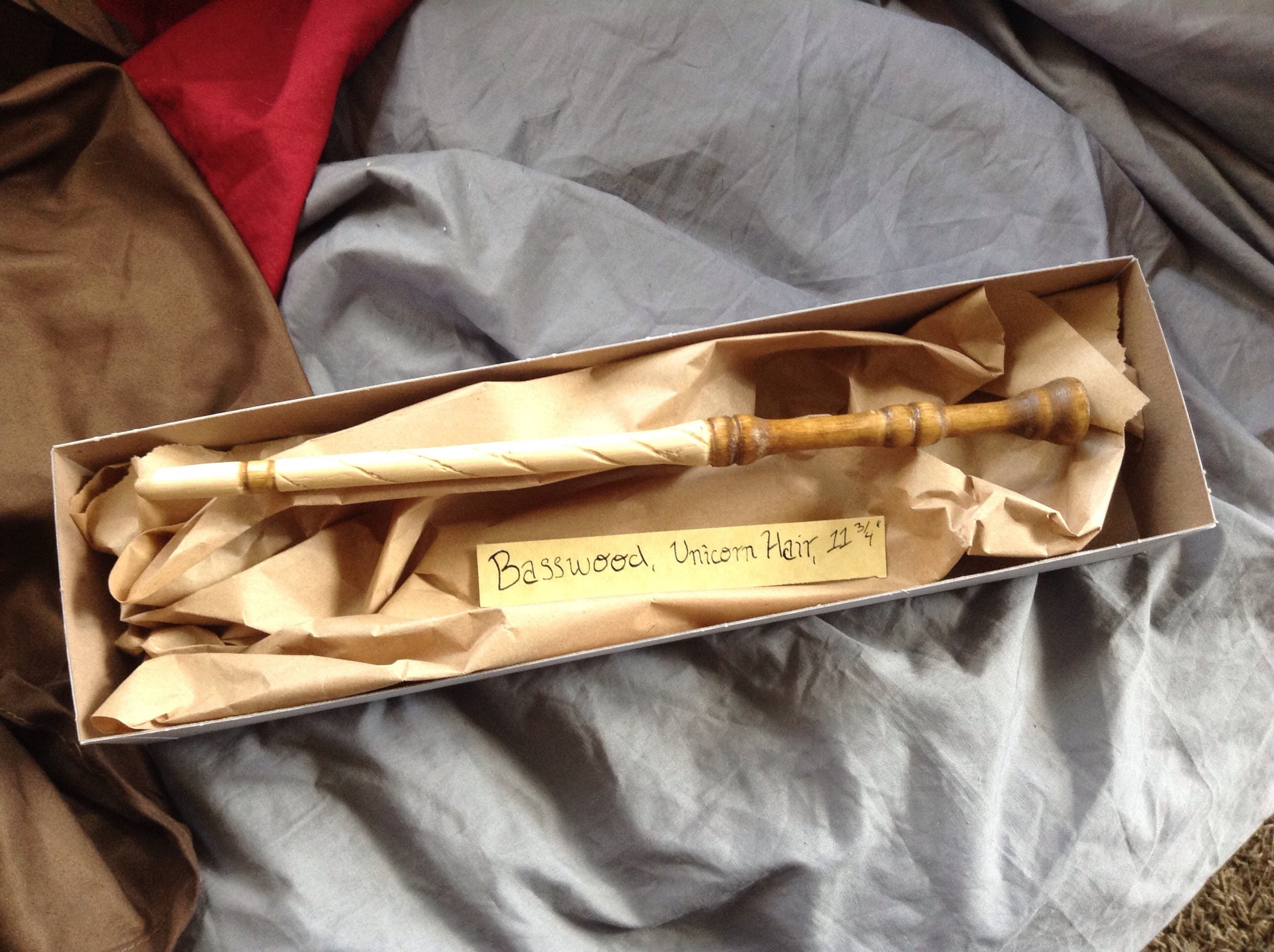 This elegant wand is made from basswood which is also known as silver lime wood. It measures 11 3/4 inches and features a unicorn hair core.